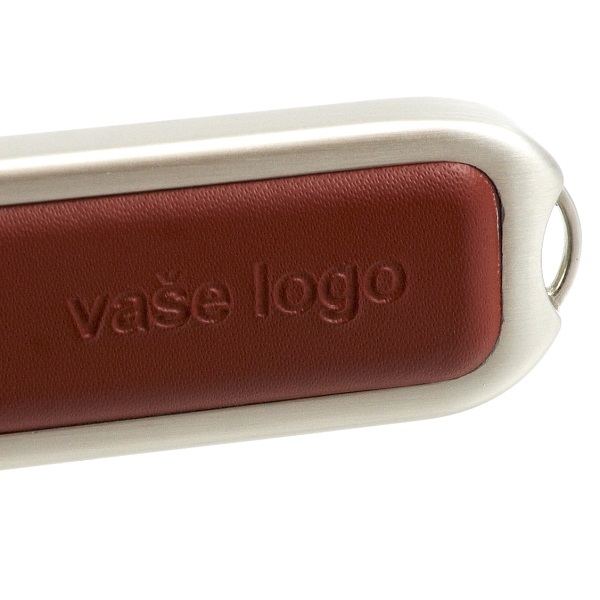 Heat stamping is available for our leather wrapped USB drives. The heat stamping process uses heat and pressure to emboss your text or logo into the drive's body. Heat stamped drives have an elegant appearance and provide a permanent brand that cannot be undone.